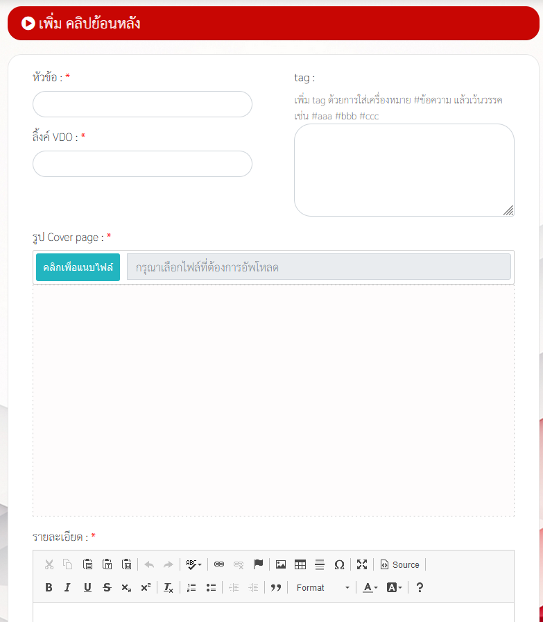 ลิ้งค์ VDO = สำหรับใส่คลิปย้อนหลังจาก link ที่ upload