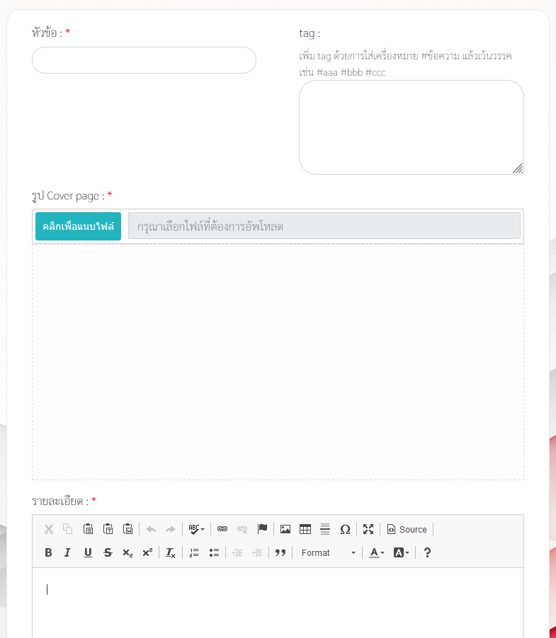 รายละเอียด = รายละเอียดบทความ สามารถใช้เครื่องมือในการเขียนบทความได้